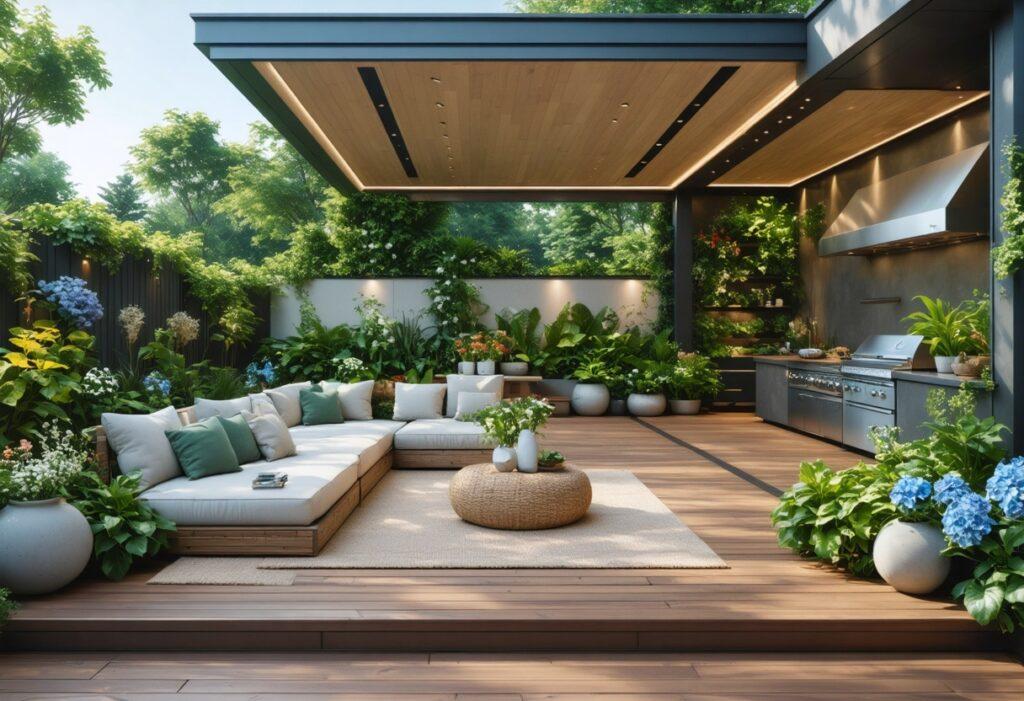 | Gestaltungselemente | Nutzen Sie Möbel, Beleuchtung und Pflanzen für Atmosphäre; integrieren Sie Sichtschutz und eine Außenküche bei Bedarf. |